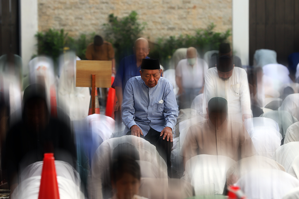 Jakarta – Umat Islam Muhammadiyah menjalankan Shalat Idul Fitri 1447 Hijriah Masjid At Taqwa Muhammadiyah, Jalan Limau, Kebayoran Baru, Jakarta, Kamis (20/3/2026). Warga Muhammadiyah di Jakarta melaksanakan Salat Idul Fitri pada hari Jumat (20/3) atau satu hari lebih awal dari ketetapan Pemerintah yang jatuh pada Sabtu (21/3). (Foto: BeritaNasional/Elvis Sendouw)