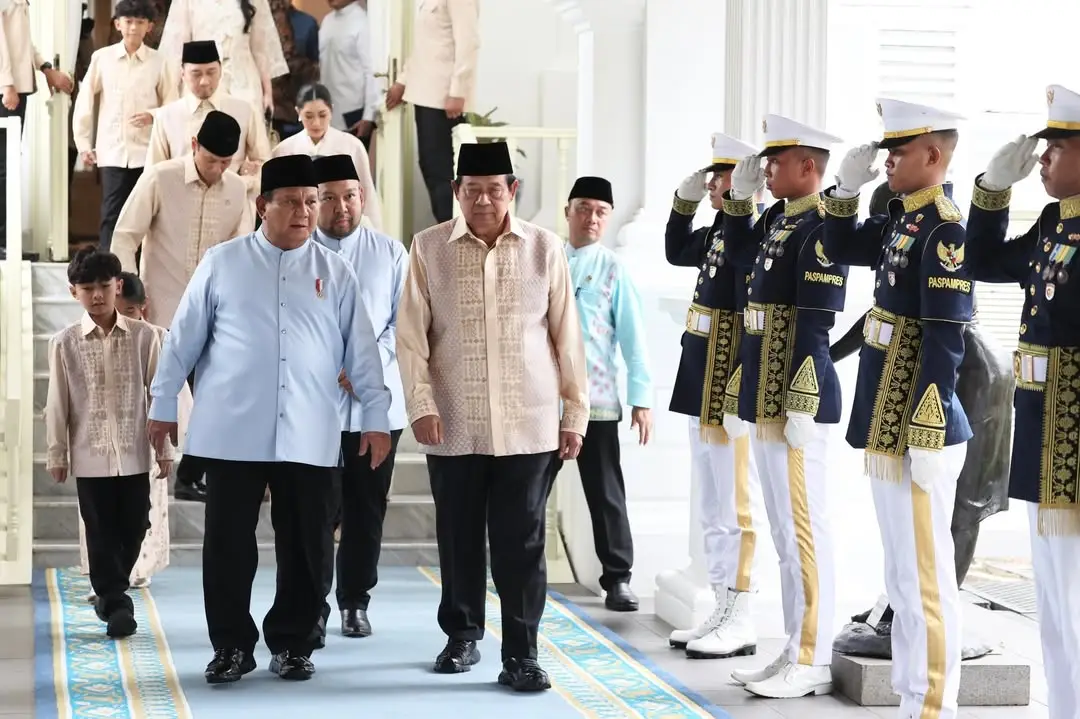 “Dalam rangka Gelar Griya Hari Raya Idulfitri 1447 Hijriah hari ini, Presiden menerima kedatangan Presiden RI ke-6, Bapak Susilo Bambang Yudhoyono. Beserta keluarga sebagai bentuk eratnya silaturahmi antar pemimpin bangsa,” ujar Presiden melalui unggahan tersebut.