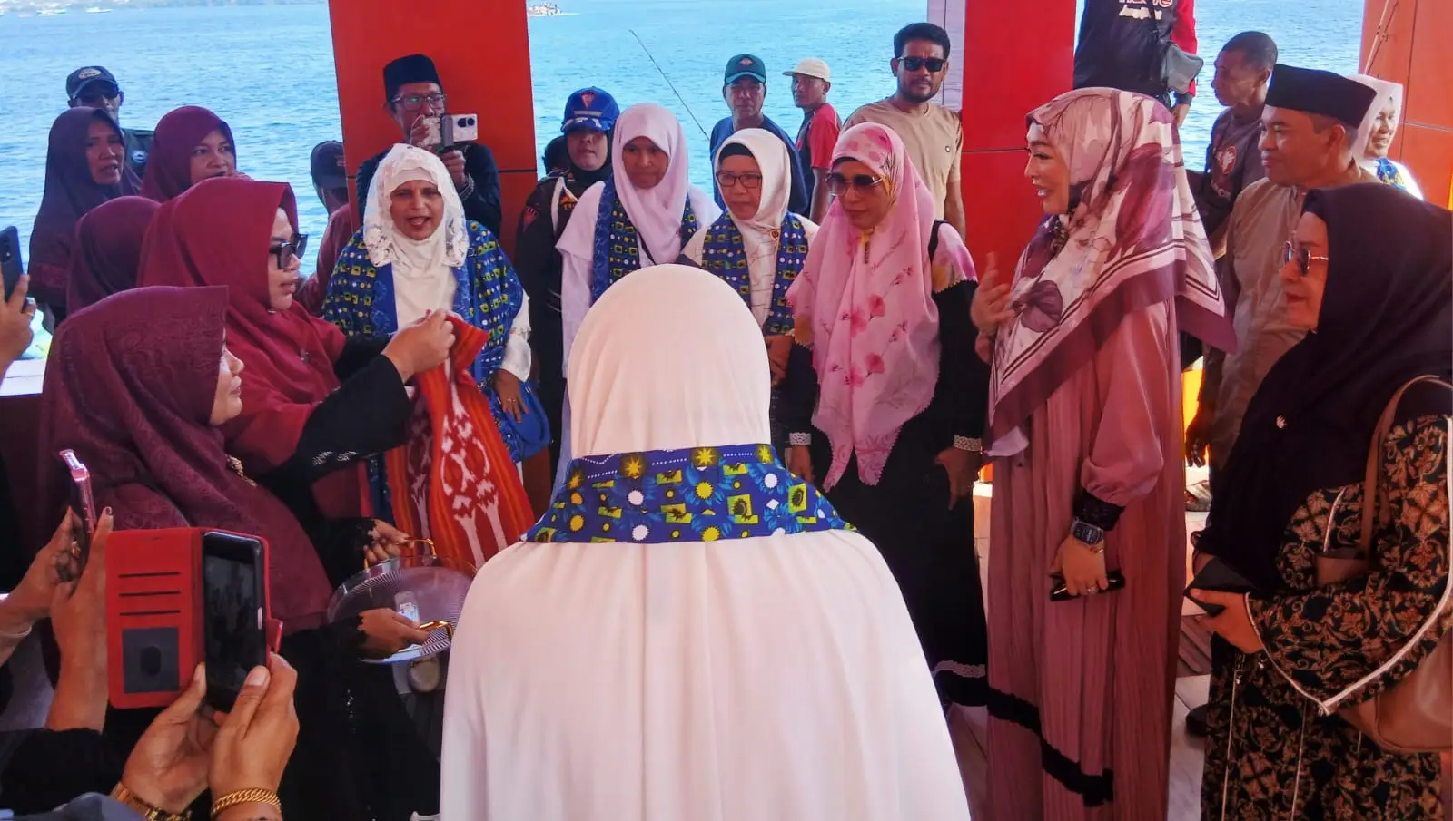 Angelina Sondakh bersama tim dari Yayasan Cinta Daarud Dakwah Lombok berangkat dari Pelabuhan Residen, Kota Ternate dan dijemput oleh Pemerintah Kota serta BKMT di Pelabuhan Rum, Kota Tidore Kepulauan.