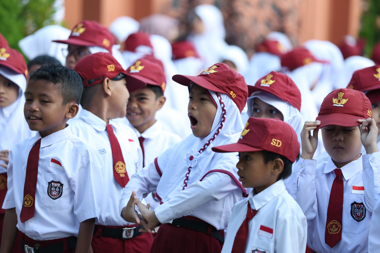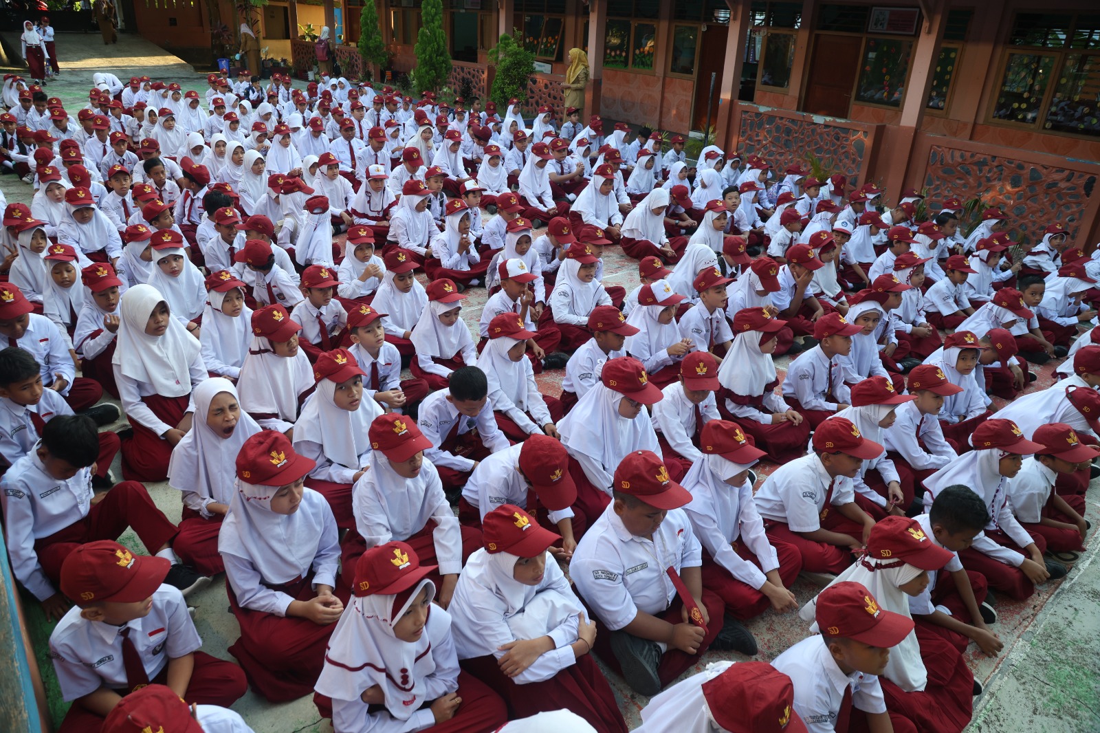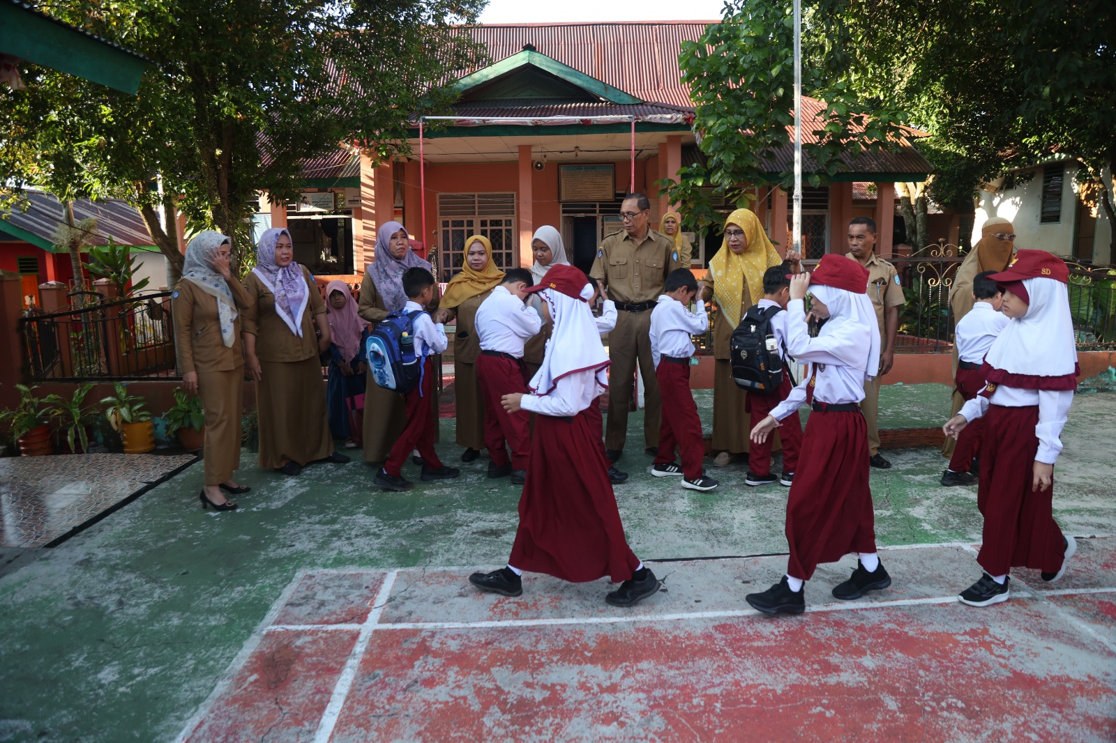 Suasana sekolah dipenuhi dengan semangat dan kegembiraan siswa yang kembali bertemu dengan teman-teman dan guru-guru mereka.