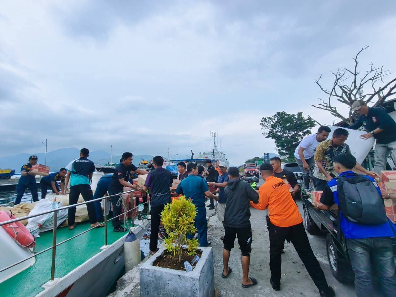 Ternate – Pemprov Maluku Utara mulai mendistribusikan bantuan logistik untuk korban gempa bumi di Kecamatan Batang Dua, Kota Ternate, Kamis (2/4/2026). Bantuan disalurkan setelah situasi berangsur membaik, dan BMKG telah mengakhiri peringatan dini tsunami. Gempa berkekuatan magnitudo 7,6 yang terjadi pada pukul 05.48 WIB dengan kedalaman 33 kilometer sempat memicu peringatan dini tsunami. Namun status tersebut telah dinyatakan berakhir sehingga masyarakat diimbau tetap tenang, dengan tetap waspada terhadap potensi gempa susulan. (Foto: Sansul Sardi/Facebook)
