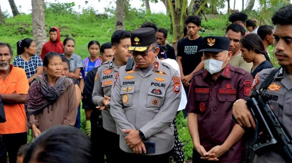 Wakil Kepala Kepolisian Daerah (Wakapolda) Maluku Utara, Brigjen Pol. Stephen M. Napiun, bersama jajaran Forum Koordinasi Pimpinan Daerah (Forkopimda), secara langsung mengawal proses pemakaman korban sekaligus melakukan mitigasi kepada warga Desa Banemo, Sabtu 4 April 2026.