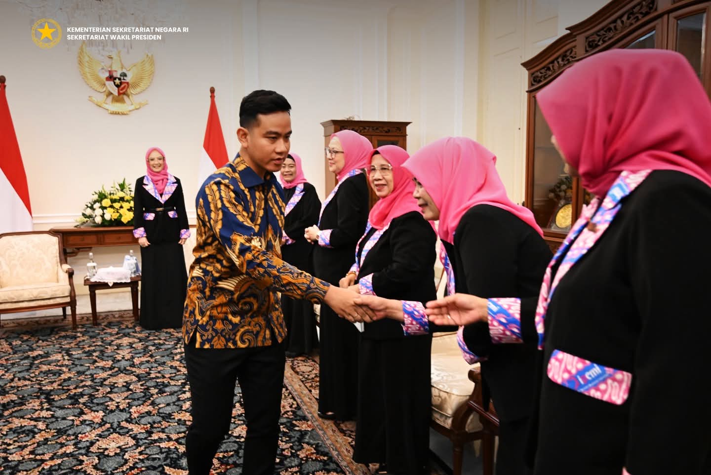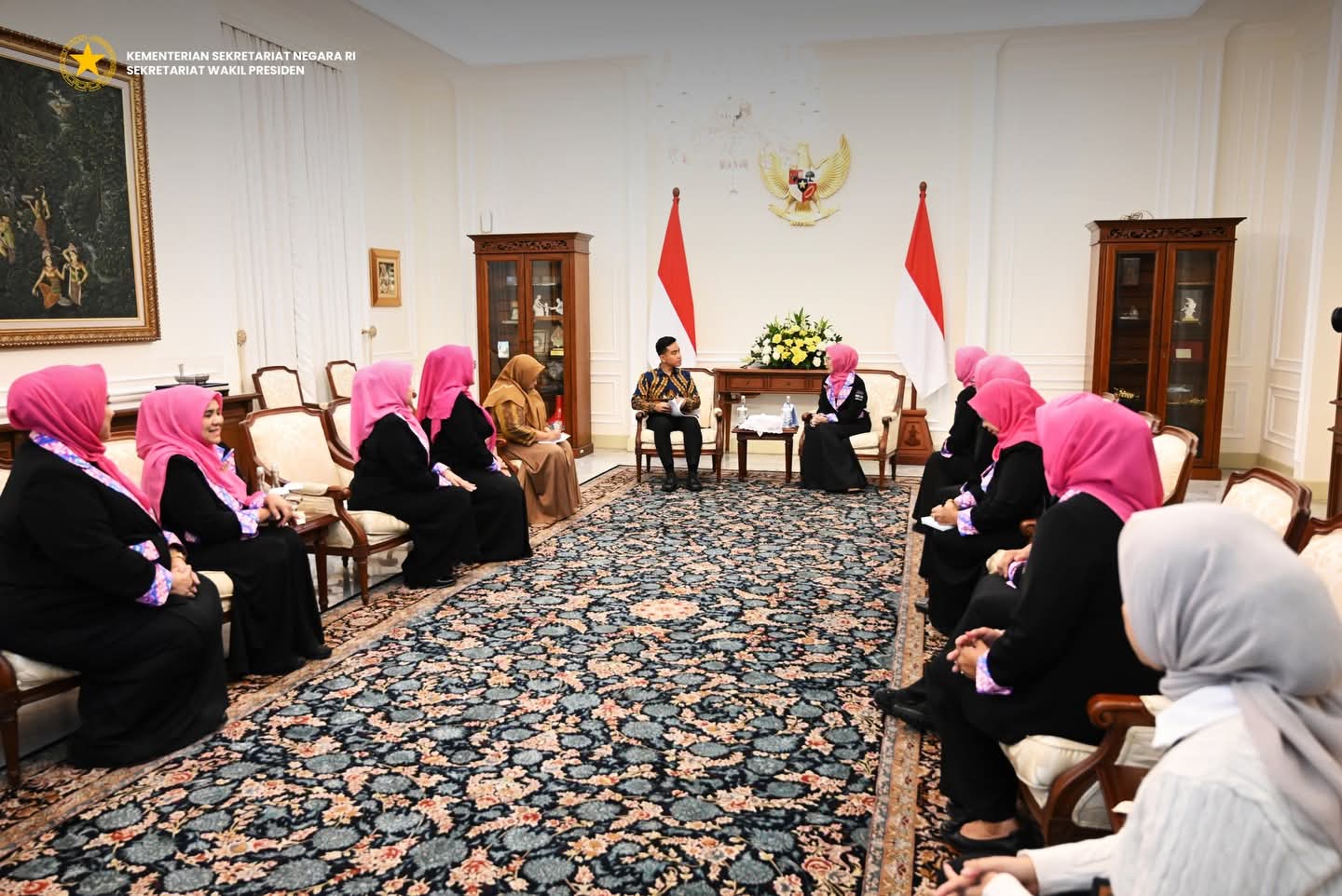 Jakarta – Perkuat sinergi antara pemerintah dan pelaku usaha perempuan dalam mendorong pertumbuhan ekonomi nasional, khususnya pada sektor UMKM, Wapres Gibran Rakabuming menerima audiensi Ikatan Pengusaha Muslimah Indonesia (IPEMI) di Istana Wakil Presiden, Jakarta, Senin (14/04/2026). Hal tersebut sejalan dengan semangat kolaborasi yang ditekankan Presiden Prabowo Subianto. Wapres juga mendorong agar IPEMI dapat mengambil peran strategis dalam menjangkau serta mengakselerasi pemanfaatan program-program stimulus pemerintah dalam mendukung UMKM hingga ke tingkat daerah.  (Foto: Aldy/Sekret Wapres RI)