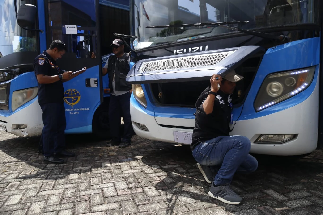 Menurut Rikza, pemeriksaan mencakup aspek teknis utama dan penunjang kendaraan. Untuk aspek teknis utama, tim pemeriksaan sistem penerangan, sistem pengereman, kondisi badan kendaraan, kaca depan, kondisi ban, sabuk keselamatan, alat pengukur kecepatan, penghapus kaca, serta fasilitas tanggap darurat.